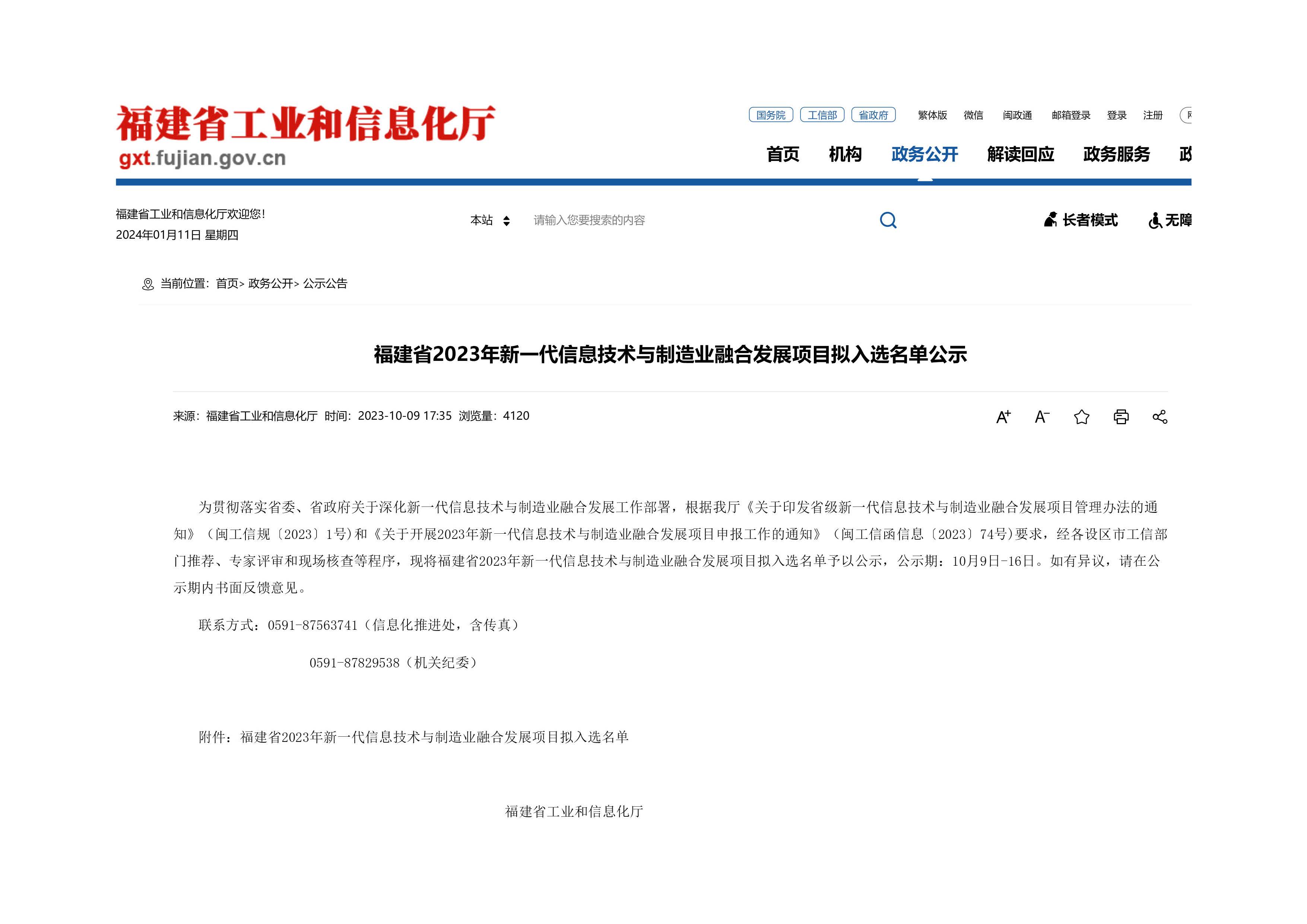 福建省2023年新一代信息技術與制造業(yè)融合發(fā)展項目擬入選名單公示(序號37)