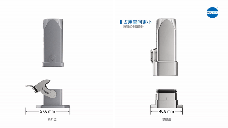 在機柜集成度飆升的智能制造時代,連接器空間占用已成為制約設備緊湊化的關鍵瓶頸。傳統(tǒng)鎖扣型外殼因解鎖位移需額外預留操作空間,導致機柜布線密度難以突破。WAIN快接型W3A金屬外殼通過彈簧輔助卡扣機構與零外擴解鎖設計,實現(xiàn)安裝空間壓縮,為工業(yè)設備的高密度部署提供底層硬件支持。