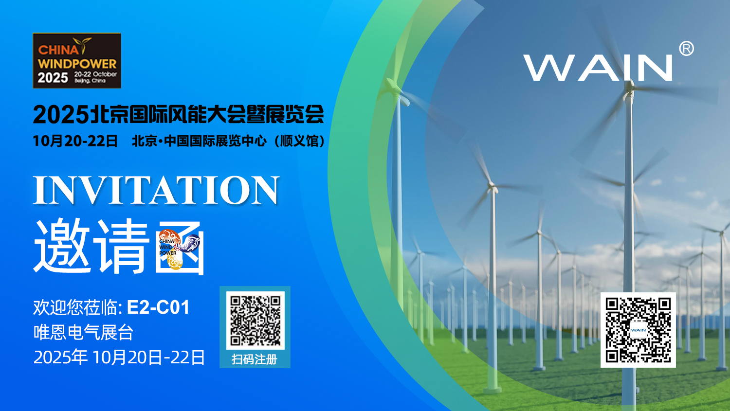 2025北京國際風(fēng)能大會暨展覽會(CWP2025),作為全球風(fēng)電領(lǐng)域最具影響力的年度盛會之一,本屆展會將全面展示風(fēng)電全產(chǎn)業(yè)鏈的最新成果與前沿技術(shù),尤其聚焦海上風(fēng)電、深遠(yuǎn)海開發(fā)、漂浮式技術(shù)以及風(fēng)電與氫能協(xié)同等產(chǎn)業(yè)熱點。唯恩電氣誠摯邀請您蒞臨2025北京國際風(fēng)能大會暨展覽會(CWP2025),與我們一同探索風(fēng)電行業(yè)電氣連接技術(shù)的創(chuàng)新與可能。